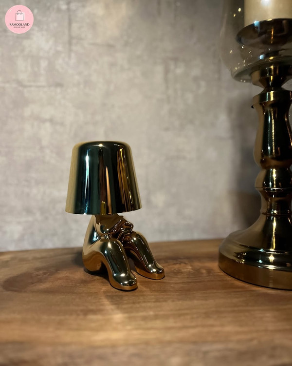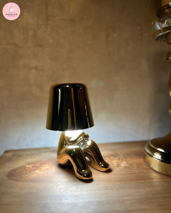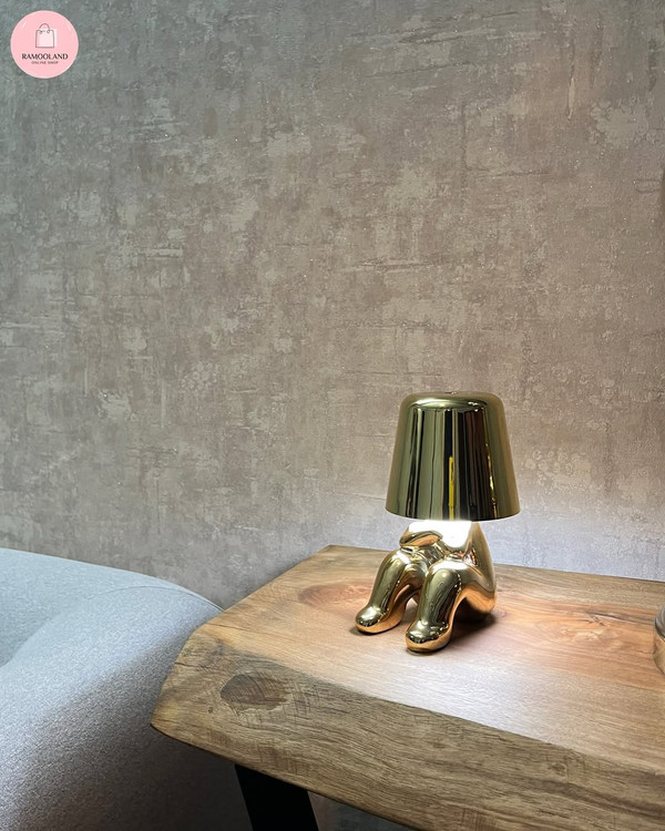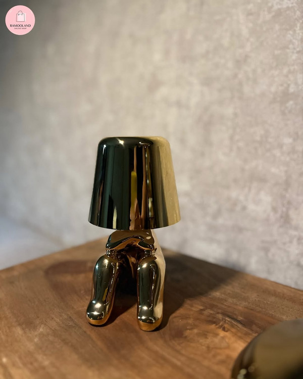 چراغ رومیزی مجسمه طلایی طرحی جذاب با حالت نشسته مناسب برای : اتاق خواب،رستوران،خانه دارای سه طیف نور و به صورت لمسی روشن و خاموش میشه