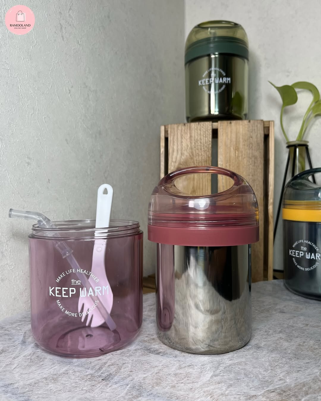 ویژگی ها : استیل ، مناسب حمل در کیف، نگه دارنده دمای غذا، جنس بدنه آکرولیک، فضای داخلی جنس از استیل ۳۰۴، قابل جدا شدن ، دسته یکپارچه برای حمل راحت، محفظه جدا برای قاشق و چنگال